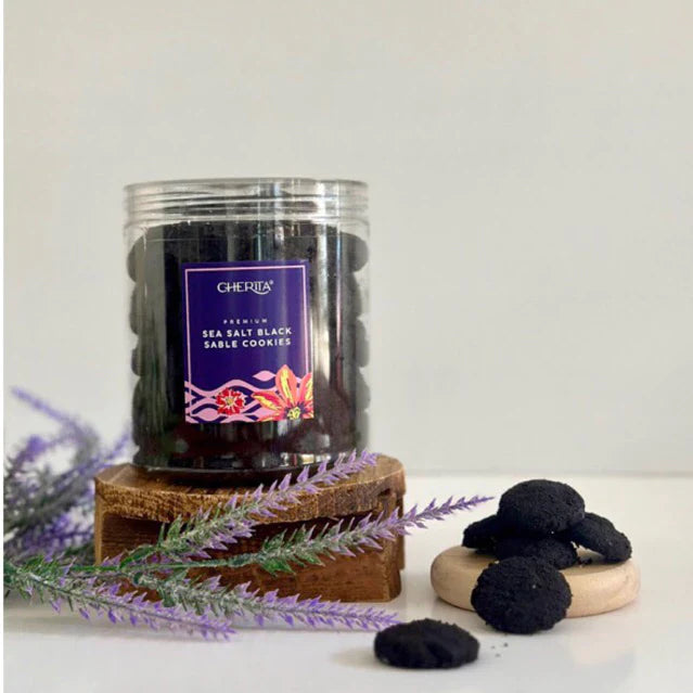 Deep, dark, and delightfully decadent—these Sea Salt Black Sable Cookies are a premium treat with a bold twist. Made with rich black cocoa powder, a touch of sea salt, and no eggs, each bite delivers a perfectly balanced harmony of bittersweet cocoa and buttery crumble.